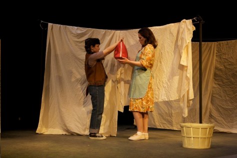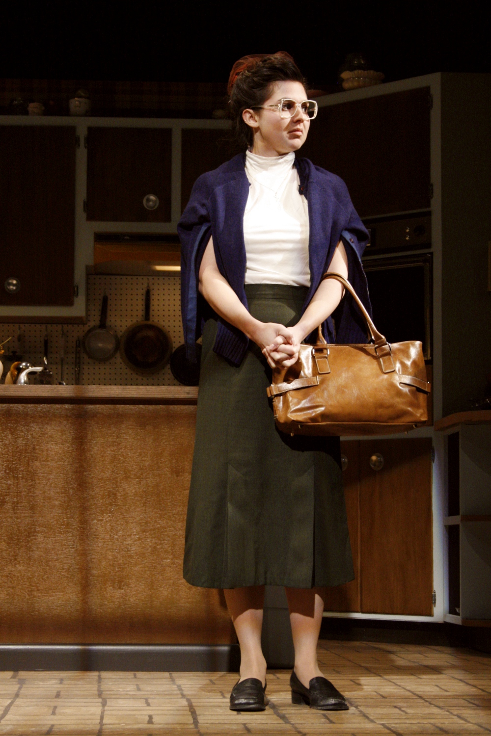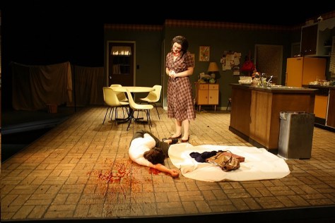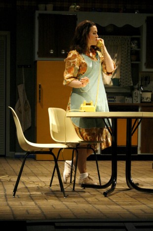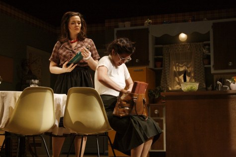 | Masha Kvichak is the main character, a mother who has fiercely-protective tendencies and questionable sanity, and the element that drives this story and holds the attention of the audience. She is on stage for the entire play which takes place over just half a day. Despite the fact that the action is contained in approximately a twelve hour period, I felt it was important show her desperate attempts to turn back time and return to ten years previous by having her change through three outfits. Not only do her dresses move her from 1963 back to the “Stepford Housewife” stereotype of the 1950s, but they also show her attempt to hold things together by becoming tighter and more structured as her life and sanity fall apart. In addition to her three dresses, I also gave Masha five aprons to put on and take off throughout the show which served to heighten the tension and add to the nervous energy in the theatre. For an interview with me about my work on this production please visit: Spotlight on Kaidi Williams |