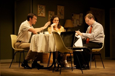 | Some Mother’s Son, a new play by Smith College 2011 MFA Playwriting Graduate Darren Harned, shows a mother in crisis after her high-school son has been accused of murdering his best friend in the spring of 1963. His accuser is Mrs. Constance North, the Kvichak family’s housekeeper, who claims that she saw Richie Kvichak drown Alexander Boltwood on a sail boat at least three hundred feet away in spite of her extremely poor eyesight. Carl Kvichak, a small-town optometrist, and family friend/ lawyer Nelson Harford begin to launch a defense in line with the story Richie (whom we never actually meet) is telling: that Alex comitted suicide and he tried to stop it. The play follows Masha as she learns more about her son through items in a discarded bag returned by neighbour boy Christopher and embarks on a mission to protect her son at any cost in the face of baleful interactions with Nelson, Mrs. North, the police, her husband, and a telephone that rings over and over again. For more about this production please visit this website created by director Kendra Arimoto (Smith College 2011 MFA Playwriting Graduate): kvichak.blogspot.com |